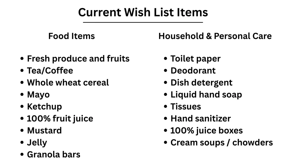 Please note: we cannot accept candy or soda. Thank you in advance for your kindness and support.
